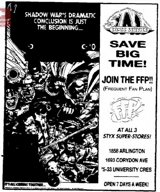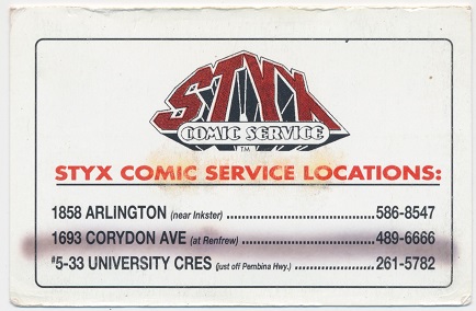 Styx was the main distributor of comics for Western Canada throughout the early 1990's. "Up 'n Coming" magazine was a catalouge put out by Styx Publications for distribution to Canadian comic book stores. It debuted in December 1990 and ran for 57 issues until 1995 (Terry Hoknes - (http://www.terryhoknes.com/comicstats.htm)